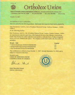 優(yōu)良的產(chǎn)品質(zhì)量來(lái)源于完善的質(zhì)量保證體系。 本公司的原料采購、原料的輸入、中間過(guò)程、最終產(chǎn)品、 檢驗和試驗及產(chǎn)品銷(xiāo)售等都被納入ISO9001-2008質(zhì)保體系中,嚴格控制各個(gè)環(huán)節質(zhì)量, 確保向客戶(hù)提供穩定質(zhì)量的產(chǎn)品。本公司所有生產(chǎn)原料均采用非動(dòng)物來(lái)源,產(chǎn)品獲得Kosher認證。